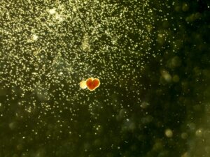In the central area of the image, a burst-forming unit–erythroid (BFU-E) colony is present. These colonies, which give rise to red blood cells, originate from early erythroid progenitors and are characterized by a compact, radially organized structure and an orange-red coloration due to haemoglobin content. In this particular case, against all scientific expectations, the cells appear to have embraced a sense of humour and arranged themselves in a rather lovely shape.